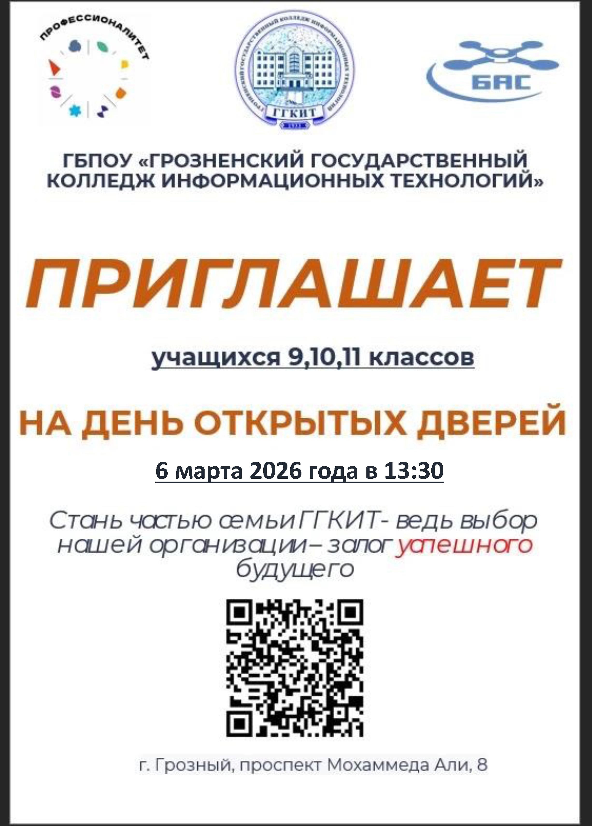 Колледж ориентирован на качественную подготовку высококвалифицированных специалистов, востребованных на рынке труда Чеченской Республики и всей России, мотивированных на получение высшего образования, постоянное совершенствование своих компетенций, умений и знаний. Поступление в Колледж очень доступно – без экзаменов, по среднему баллу аттестата. Учиться в колледже относительно легко, особенно тем, кто не пропускает занятия, старательно занимается и творчески мыслит. Прием в Колледж абитуриентов на обучение, по реализуемым образовательным программам, осуществляется по заявлениям лиц, имеющих основное общее образование, среднее общее образование, начальное профессиональное образование, среднее профессиональное образование, высшее профессиональное образование.